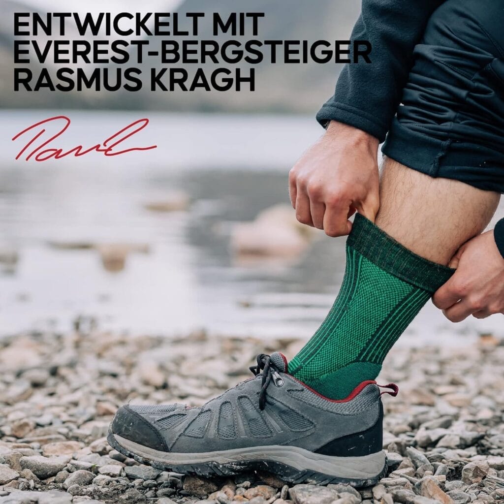 - Kombinieren Sie die Socken mit gut sitzenden Wanderschuhen für ein optimales Wandervergnügen.